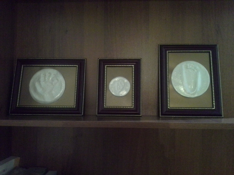Разности. В начале месяца у мужа был день рождения и Софиюшка сделала замечательный подарочек! Сделала я Софийкины отпечатки и оформила в рамочки. Ручку, ножку и ушко. Папа был в восторге, он долго ждал этот подарок и даже не подозревал что это будет.
