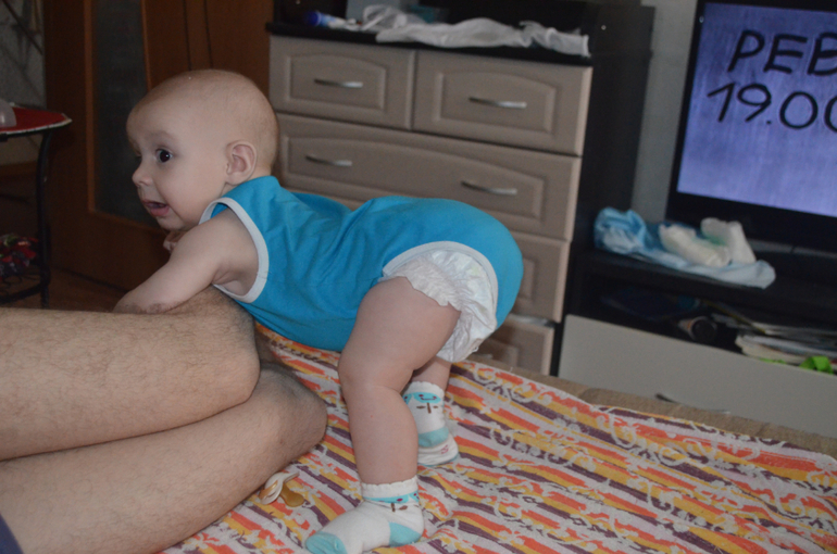 Физическое развитиеОфигеть..по иному и не скажешь.К ранним умелкам Ромы типа гуления в месяц,вставание на четвереньки и т.п. я привыкла и была рада..НО в 4 мес Рома стал от опоры присаживаться.Я его отвлекала как могла .А сейчас вообще не уследишь и не отвлечешь-только отвернусь он уже сидит.А на той неделе стал забираться на перила дивана и вставать на ноги..Вот что что с ним делать-хоть привязывай.Уже и в коляске не погуляешь с ним,когда он не спит-одно неловкое движение и выпрыгнет с нее..