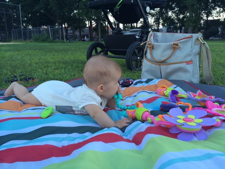 А вот так теперь гуляем, чтобы не таскать на руках.