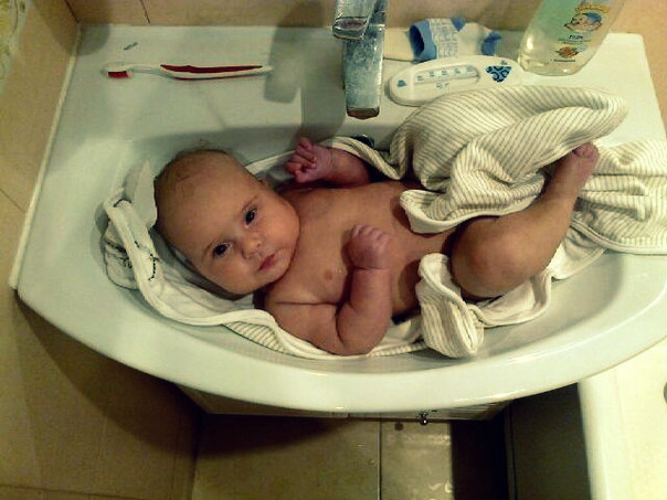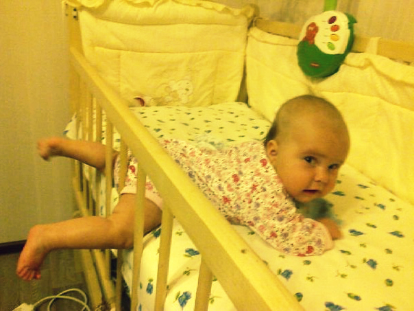 Режим… Это для меня нечто из разряда фантастики! С месяца и до этой недели она спала так, как не спит ни один ребенок - 12 часов подряд! С 12 ночи и до 12 дня БЕЗ ПЕРЕРЫВОВ на еду! Для меня это было чудесно, я любитель поспать, это мой график, все идеально. Но для ребенка, конечно, график смещенный. На этой неделе вообще что-то непонятное творится со сном, может, Настя график меняет, может это мои нервы сказываются. Засыпает она к часу ночи с боем (хотя такого мирного ребенка надо поискать!), сон беспокойный, ворочается от каждого скрипа дивана, просыпается с 5 утра до 10 раза 3, я перекладываю ее к себе в кровать в 5 или даже засыпаю с ней с ночи, спит просто ужасно, ворочается, во сне скрипит-плачет, требует сиську. А у меня грудь уже привыкла, что молоко в это время не нужно… В общем, кошмар. Все время трясусь, что она лишний раз поест и вечером ей не хватит. Но пока нормально хватает, со скрипом. Просыпается в 10 уже окончательно, иногда мне удается полежать еще полчасика, пока она рядом «ползает», но не всегда.