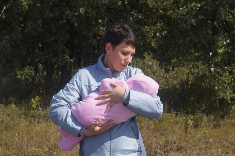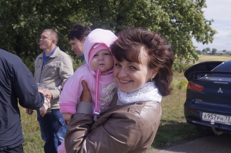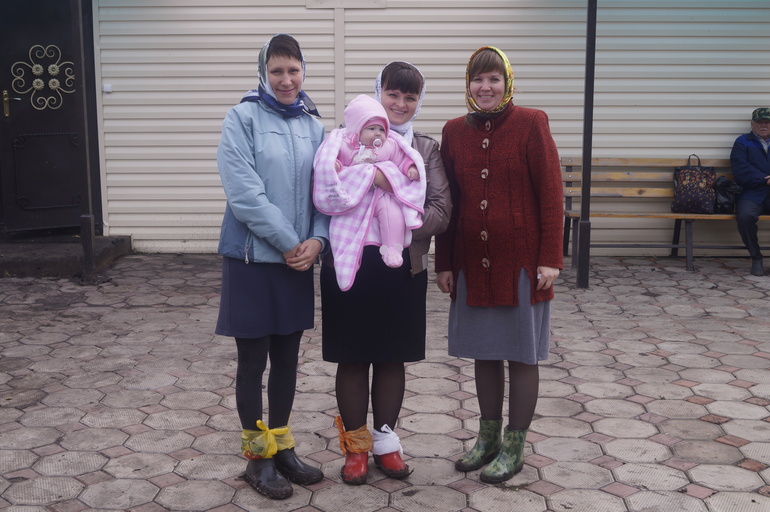 Утром я почему-то волновалась. Но как оказалось, зря. Всё прошло просто отлично!!!Крещение проходило в церкви за 100 км от города. Спросите почему? Просто я ездила туда за благословением на рождение ребёнка, а потом уже с пузиком там была. Вот и решила я , что будет крестить дочку только там и нигде больше. Село Старое Чекурское, батюшка Олег Волков. О нём ходят много разных хороших историй ( если хотите узнать про него , то просто наберите в поиске - Чекурский батюшка. Первая ссылка ). В 10 нам надо было быть в церкви. Выехали из города в 7 и в 9 были уже там. С нами крестился ещё друг мужа ( его жена в положении. Правда срок небольшой. Она, как и я, попросила батюшку благословить её на вынашивание и благополучное родоразрешение). И я считаю, что всё будет хорошо. По-другому быть просто не может!!!! Крёстными дочки были моя подруга и зять мужа. Проехать на машине к церкви мы не могли. Размыло дорогу. Грязища. Но мы наконец-то достигли цели. Вот какой вид с девчонками у нас был.