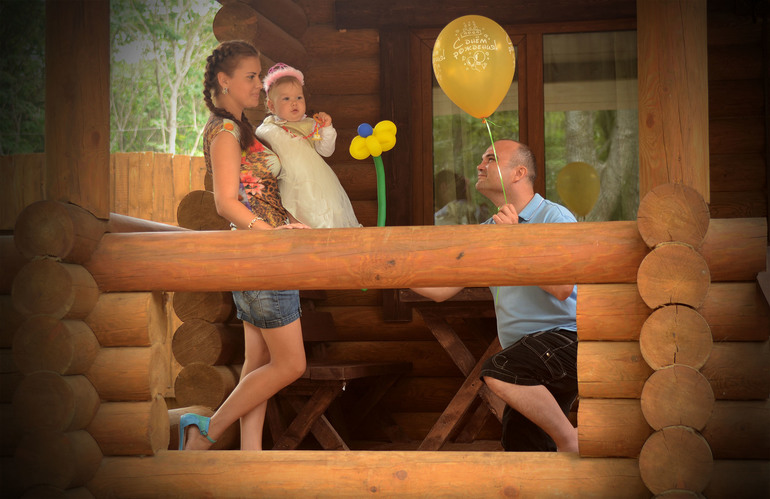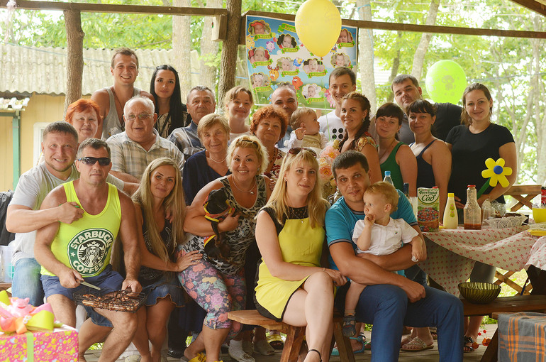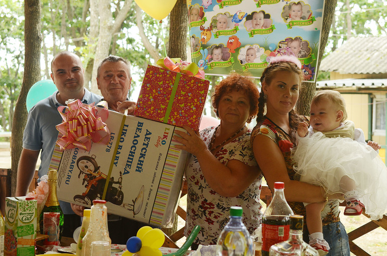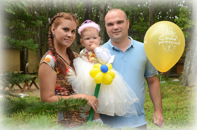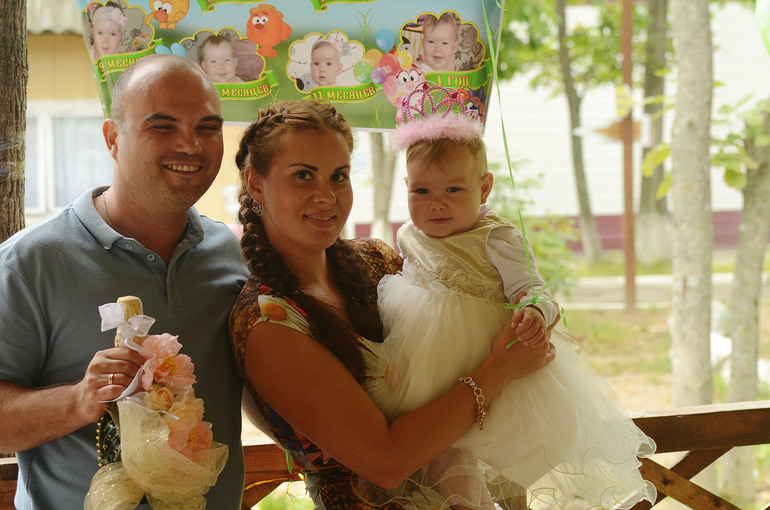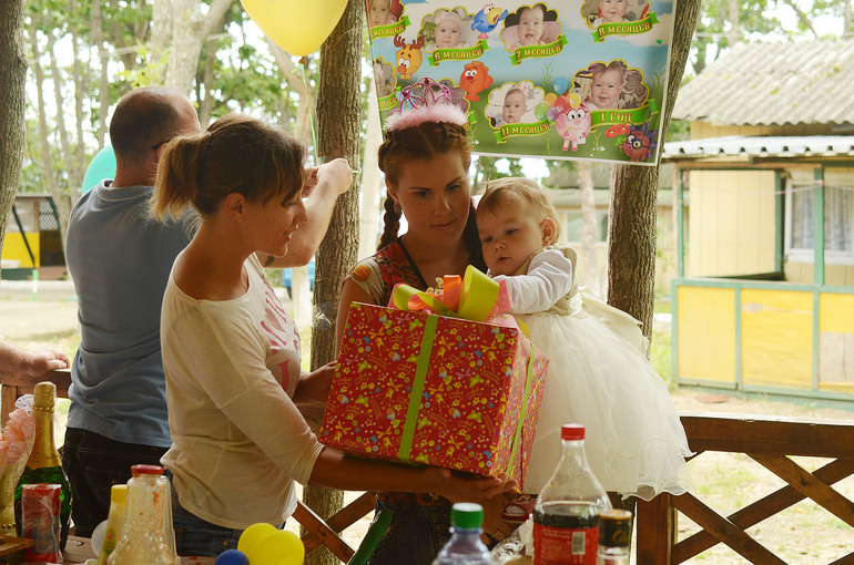 Праздновали мы на базе отдыха "Жемчужина", сняли 2-х этажный дом и беседку для гостей в 30 человек! Отметили отлично!!!! Были и конкурсы и подарки и танцы:) Я сделала плакат "1 год" и фильм смонтировала про первый год жизни Милашки, всем родственникам мы подарили кружки с изображением самих родственников с Милкой, еще на бутылки с алкоголем были наклеены фото Дочери ( распечатала фото на самоклеющейся бумаге)