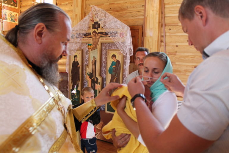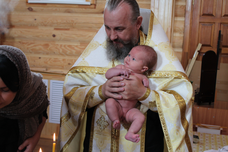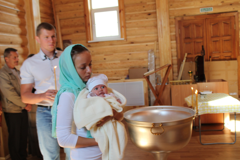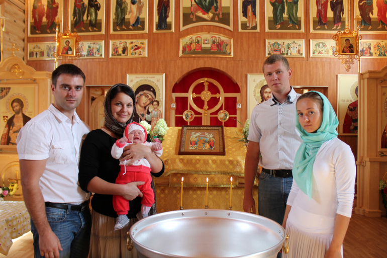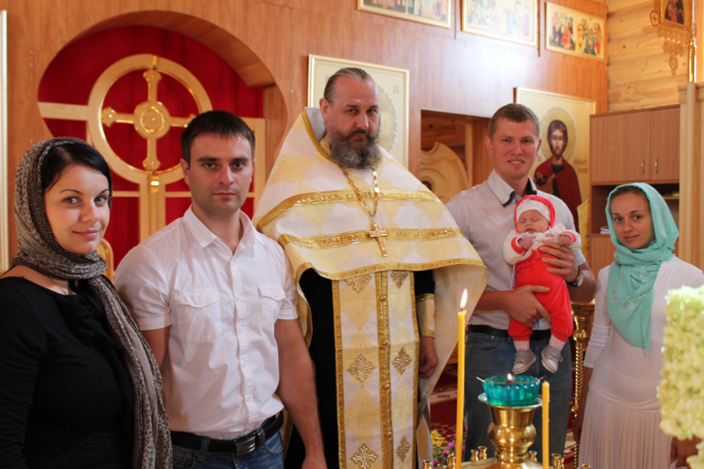 Крестили ее в честь св. Императрицы-Мученицы Александры Федоровны в селе,откуда я родом.Малышка вела себя отлично,только под конец таинства расплакалась,так как замерзла немного.