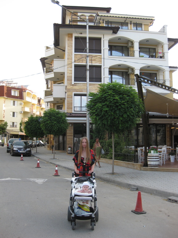 Только на улице в коляске она хорошо опирается на локти и может хоть 2 часа ездить, все рассматривать: