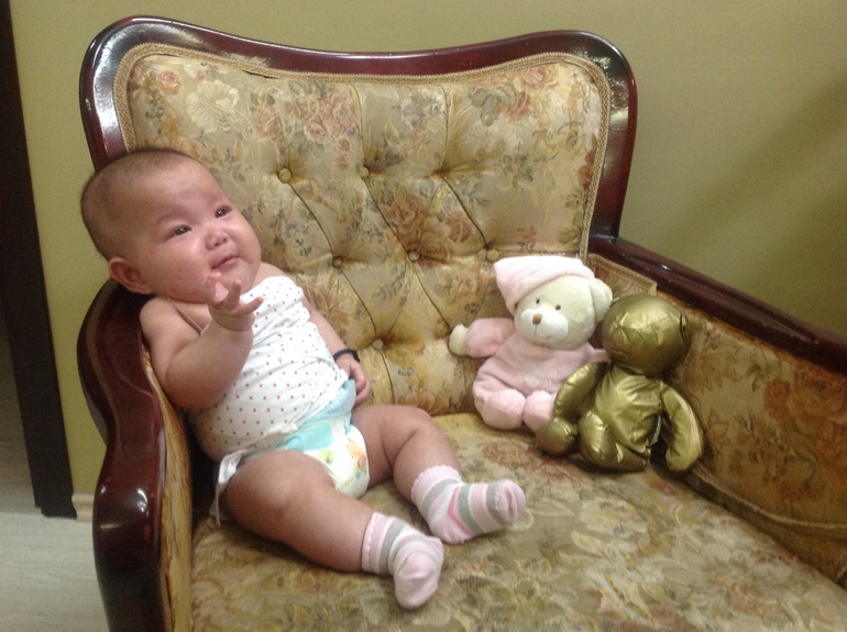 Взаимодействие ребенка с окружающими6 месяцев нам исполнилось 8 дней назад, а времени стало более-менее хватать сейчас. В августе приехали мои отважные родители: отдыхали в Геленджике, добрались через Сочи ракетой в Батуми и в тот же день на машине приехали в Тбилиси. Добирались целые сутки, но игра стоила свеч: Элене встретила их при пробуждении улыбкой и начала радостно болтать. Так же радушно дочка познакомилась с родителями мужа, которые переехали в Тбилиси, и теперь мы будем жить вместе.