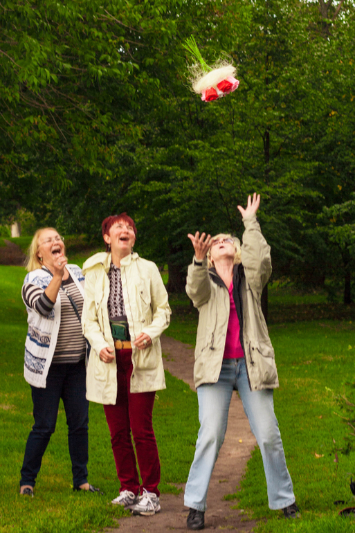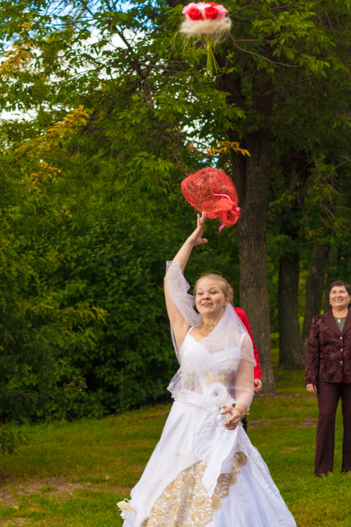 Невеста оказалась находчивой и подбежала к туристам из Германии, чтоб они словили ее букетик)))