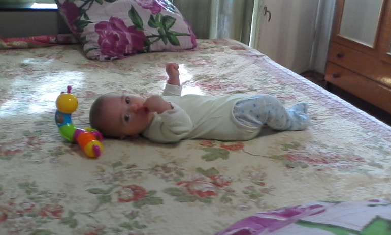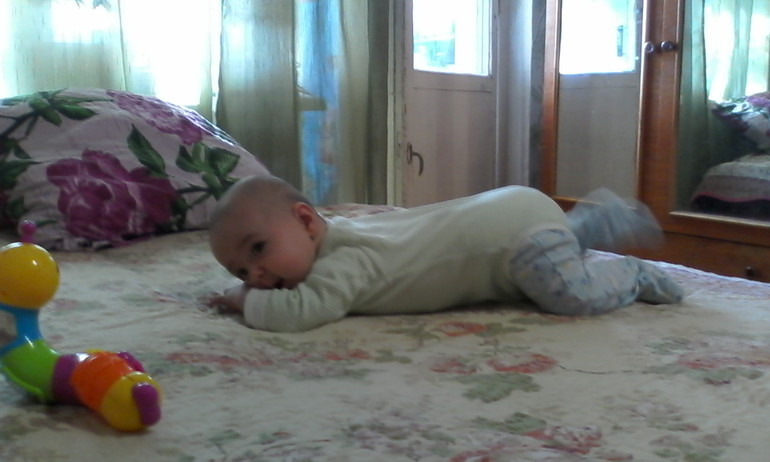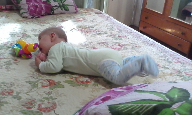Он уже давно так переварачиватся начал, а вот кричать пискливым голосом вчера