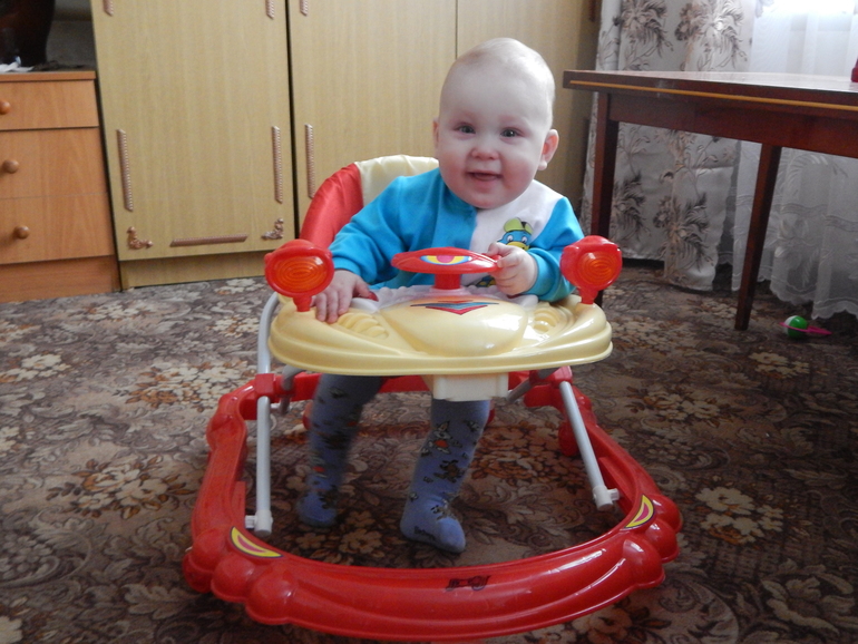 С 3х месяцев уже уверенно держал голову и стал откликаться на свое имя, с 4х месяцев научился переворачиваться на животик и сидеть с опорой, а еще попробовали кушать с ложечки. в 5 месяцев стал сам сидеть, с полугода ползать и вставать на ножки у опоры, а так же ходить за ручки. Просился ходить сам, никогда его не заставляла, подползет и клянчит, чтобы за ручки поводила.