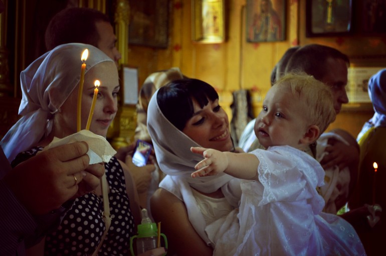 В церкви были вместе со всеми. Личных крестин так и не надумала проводить...вместе же, веселее)))
