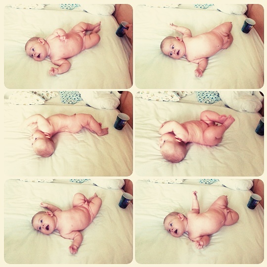 Почти-почти... может игрушку положить?потянется...моя ради игрушки перевернулась.