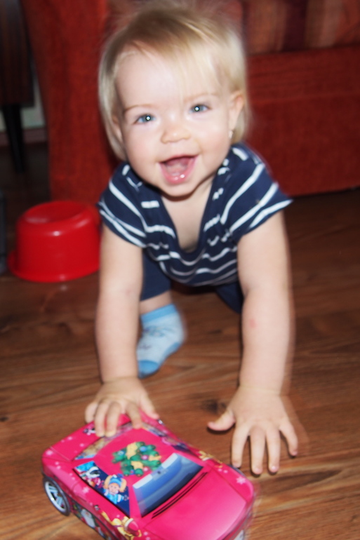Я с Тимкой гуляли по магазинам, с маленькой был папа. Юляшка играла на диване, а папа на секунду отошел, отвернулся. Она вмиг вскочила на ноги, а т.к. опора мягкая, то равновесие удержать не получилось... Улетела с дивана конкретно. Вырвало спустя минуту после падения.