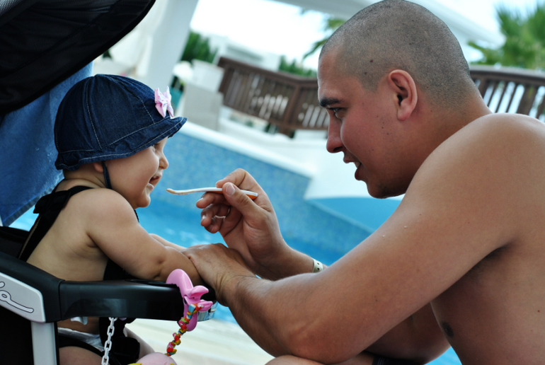 Ну в общем и так часиков до 6 вечера, потом шли в номер, отдыхали, и часов к 7:30 шли на ужин и после этого гулять! Брали с собой для Киры кашку, и она в итоге засыпала в коляске и спала там до середины ночи и потом мы перекладывали ее в манеж.