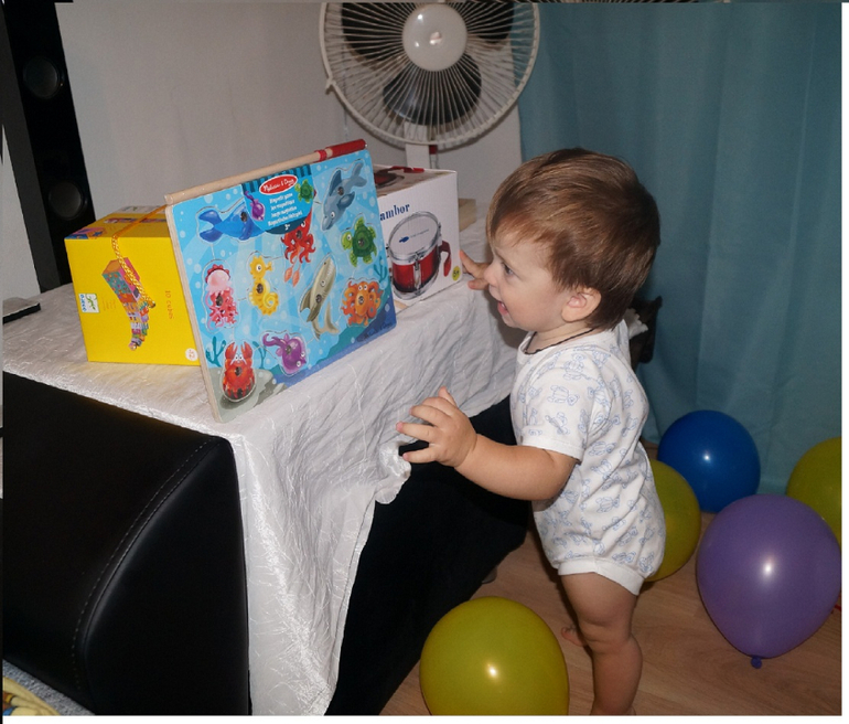 Но после мы привлекли его внимание к подаркам и все вместе стали рассматривать!!!