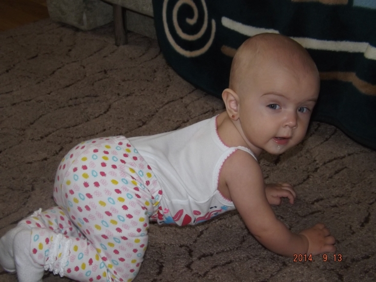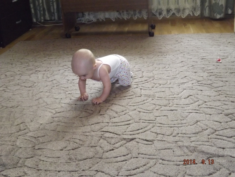 4.С 4 мес и 3 недель ползаем по-пластунски,а вчера она на четвереньках сделала первые пару "шагов" еще не совсем может сообразить как руками и ногами двигаться одновременно!!!!