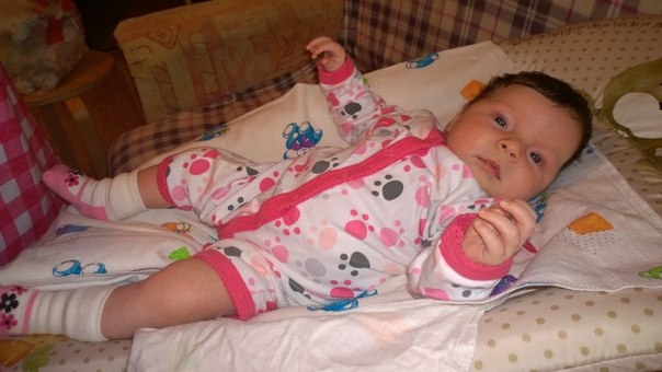 Уже неделю как переворачиватся с животика на бочок, а после на спинку, так что на животе е лежать не заставишь ни секунды. Со спинки на бок переворачивается давно, так что ни на секунду ее не оставляем, активная очень. Любит слушать музыку, включаю часто ей классику, успокаивается под нее.