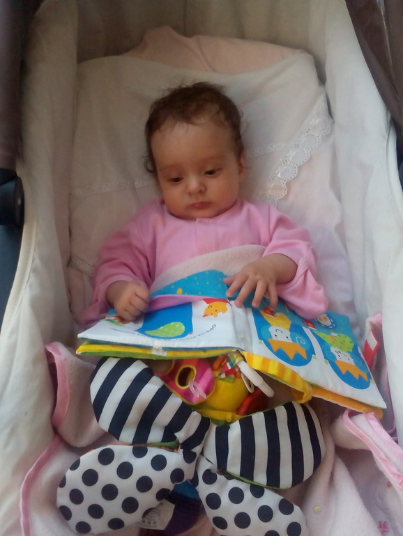 Пчела фирмы Playgro, покупали в обычном детском магазине, это её любимая игрушка. А мягкую книжку мы покупали в Издательстве Старого Лева, здесь во Львове.