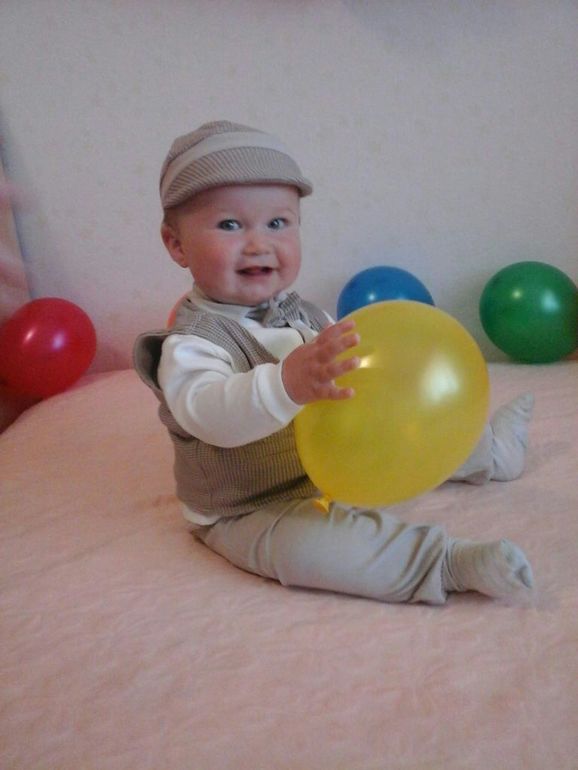 Уже годик. Наши выпускникиВчера нам исполнился годик!! Мы совсем большие....гыгы!!! Рост 75, вес 10600, имеем один зубик! Спим пока так же днем два раза, ночью ооочень плохо, оч надеюсь что причина в зубах! А еще мы трусишки и ходим за две ручки, даже одну отпустить боится, мой маленький бутуз! Говорим мама, папа, баба, вава, передразниваем всё что гудит и едет, дразнит тебя когда кашляешь,зеваешь, потягиваешся с просони! Любит целоваться и танцевать под любую музыку! А еще мы на "ты" с горшком, особенно по "большим"делам! Будит кричать до последнего, но в памперс не сходит!