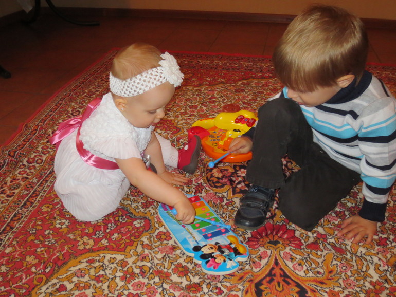 На празднике был наш двоюродный братик. Ксюша демонстрировала ему свои игрушки