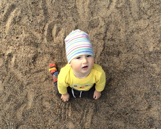 пока была хорошая погода, мы играли в песочнице. Яруська больше всего любит по песочку ползать и находить то, что плохо лежит)))