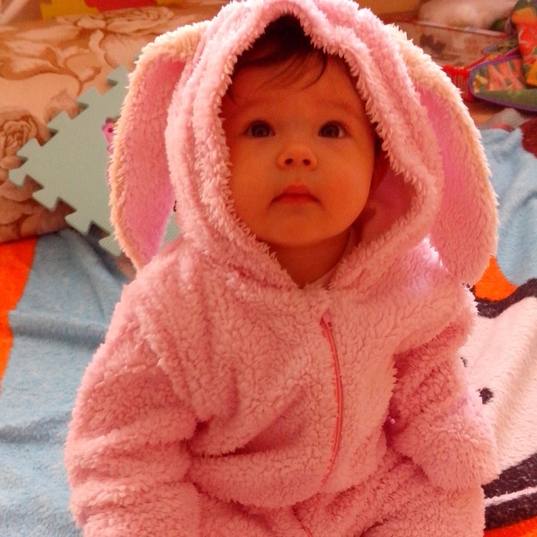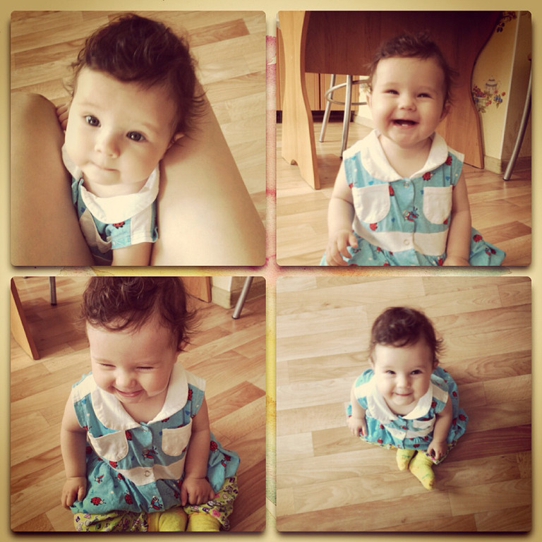 По поводу умелок, впринципе ничего нового не добавилось, вставать мы умеем но только карабкаясь по мне и чтоб я страховала сама она боиться, и долго не стоит, зато целый день мы что и делаем цепляеться за меня встает плюхаеться на жопу и опять встает и так целый день))) сама еще не садиться,но сидит хорошо,смотрю на ленту по развитию дети нашего возраста уже и встают сами,и сидят и разговаривают, и мама,папа уже говорят, а мы еще совсем ничего не говорим,так на своем что то лепечит,или когда плачет может вырвоться что то типа мамамама,но это было не осознанно и всего пару раз, у нас главные эмоции это когда мы пищим,это ее любимое дело,завалиться начинает ногами дрыгать и пищать,особенно ночью,соседи все уже с ума сошли т.к дама у нас горластая)) Я ей начинаю говорить что нельзя она начинает ржать))) Вообще рассмещить ее может любой и каждый, веселушка такая растет))) А вот на руки даже к папе не идет что меня очень огорчает,сейчас лезут зубки, начинаються капризы и сидит целый день на моих руках(((устаю дико,болят руки и спина((( А еще научилась проситься на ручки,она сидит на полу играет,я мимо прохожу, она начинает ручки тянуть и улыбаться,ну вот как после этого не взять это чудо))))