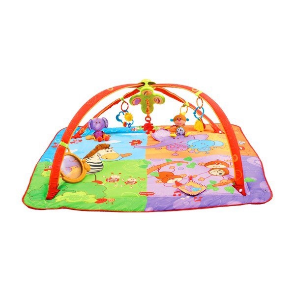 Развивающий коврик от Tiny Love - нужная штука. Он у нас появился, когда Максу было полтора месяца, думаю раньше он бы вряд ли пригодился. Как и все изделия от Tiny Love это качественная и яркая вещь, хотя не лишена странностей в дизайне. Нам коврик достался в подарок и за это я люблю его еще больше:) Так чем же он так крут? Ну во первых он достаточно большой и плотный, сверху 2 дуги с разными игрушками и грызунками, на нем много разных шаруделок и фактурных прикольчиков, короче, думаю, сыну он будет интересен еще долго. Наш коврик оценил не только Макс, но и кот, поэтому по первой ковер приходилось делить на кошачью и детскую зоны. Я же очень люблю эту вещь за то, что она сделана из такого материала от которого очень легко отмываются малышачьи срыгульки и какашки, думаю многие мамы это оценят. Еще на нашем ковре есть переключалка мелодий, и моргающий мобиль - куча примочек способных заинтересовать любого ребенка. Даже муж иногда на пару с Максом заваливается на коврик и они вместе смотрят моргающие лампочки и подвесные игрушки. Кайф:)