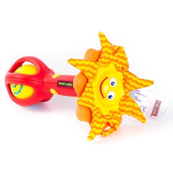 Погремуха-солнышко от кого бы вы думали? Правильно! От Tiny Love! Еще одна странная, если говорить о ее дизайне, но излюбленная Максом вещь. Выглядит эта штуковина весьма непонятно: с одной стороны у нее то ли солнце с глазами, то ли подсолнух, а с другой - гремелка. Предесть погремухи в том, что она очень яркая, с шаруделками и каким-то магическим способом всегда успокаивает Максима, когда тот кричит. Минус ее в том, что у нее достаточно широкая ручка и она не помещается в ладошке у малыша. Как только Макс родился, помимо безопасности я была еще и хорошенько повернута на гигиене, поэтому запихнула погремуху в пароварку для дезинфекции. Не делайте так! Она конечно вынесла все экзекуции, но немного потеряла яркость. А что вы хотели? 20 минут пыток в пароварке, это изощренно даже для времен святой инквизиции.