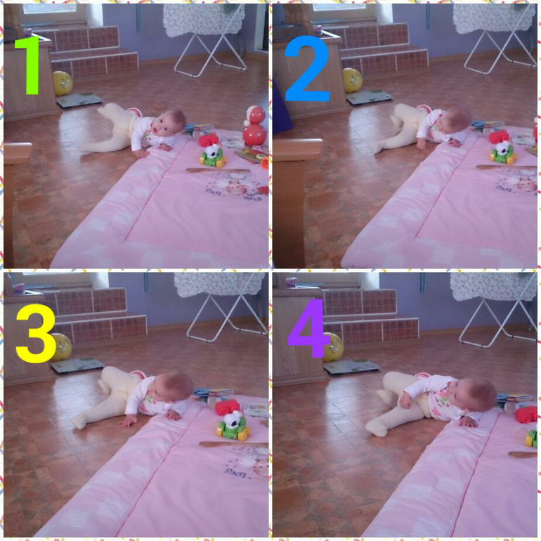 Пока мы не стоим на четвереньках, не ползаем и не сидим. Но всему свое время. Хотя сегодня, мне моя булочка преподнесла мини подарок) она пыталась сесть) со спинки. Я прям замерла от удивления, когда сие увидела.