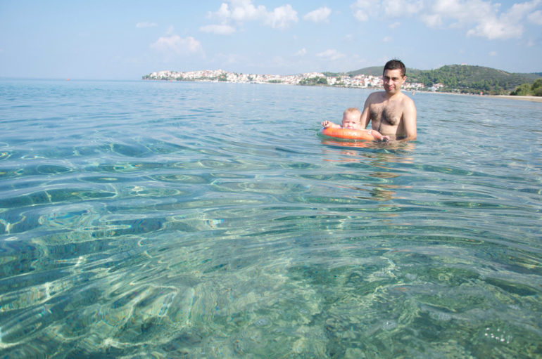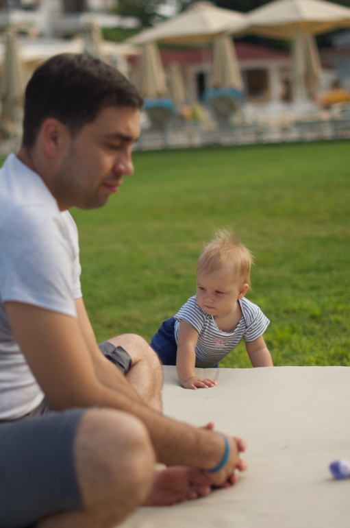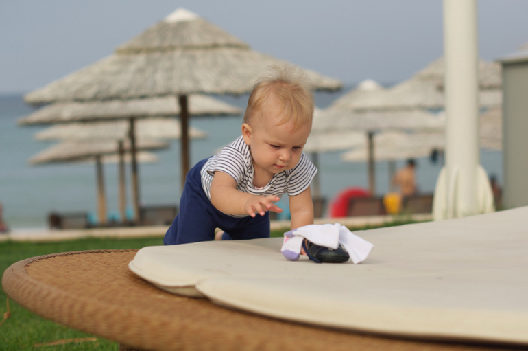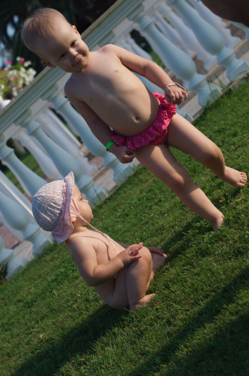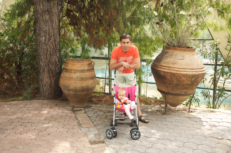 Отдых с детьмиПока Чеп сладко дрыхнет, расскажу ка я Вам свой рисковый опыт выезда на моря с 11-месячной деточкой. Несмотря на окружающее: с детем до трех лет нельзя!!! Это мучение!!!!! Куда прешься??? Этот отдых я планировала еще с Аленкой в животике, очень ждала его и для нее и для себя, и для нас с мужем. Ездили мы в Грецию, от Музенидис Тревел с 12 по 22 сентября. Вылетали из Ставрополя в ночь. Вечером уложила Чепушка уже в выездной одежде, дала каплю Валериана Хель. По дороге в аэропорт барыня дрыхла, в аэропорту проснулась и бодрствовала веселенько и активно. При этом, зал прилета-вылета один, поэтому, когда прилетел самолет из Греции, нас на время выгрузки пассажиров перевезли метров тридцать на автобусе в другую каморку, для разнообразия, вестимо. Приобретенная легкая трость облегчала прохождение таможни и паспортного контроля. Сдали трость у трапа. Посадили в самолет, Чеп стал засыпать и тут - опаньки!!! Ваш самолетик сломался, вылезайте все нафик обратно, ждите пока из Греции прилетит замена с сердитым экипажем незнамо когда. Ну, конечно, не в таких подробностях, а: покиньте самолет на часик, мы тут кое-что проверим.... Всего то... Двигатель не включился... Ну хоть не в полете и на том спасибо. Хочется отметить, что аэропорт у нас оборудован по последнему всхлипу техники и комфорта, а последнему всхлипу комнаты матери и ребенка и удобных кресел не требуется, поэтому мы принялись бродить с Чепом туда-сюда по одному большому общему залу, сначала ножками, потом с коляской, потом с эрго, потом с хипситом, потом пытались заснуть в коляске, эрго, сидя, изподвыподверта. Чепух, человек тонкой душевной организации, не умеет засыпать абы как, поэтому начался концерт с истерикой по заявкам. Сердобольные девочки, сотрудницы аэропорта, пустили в свою гостевую комнату, большое и искреннее им спасибо за это, выделили диванчик и даже ходили тихо вокруг нас, пока мы пересыпали до утра, так как домой нам не варик ехать было. Всего вылет задержался на 8 часов. Второй раз прошли регистрацию и все контроли, паспортный был особо тщательным, ведь за несколько часов мы могли стать особо опасными преступниками, сели в самолет и Чеп опять вырубился досыпать. Сися мне в помощь. Я и папа тоже покемарили. Надувные подушки нам в помощь. Другие нашевозрастные дети вопили и стонали вокруг, а мы вели себя чинно и даже проснувшись на посадке мирно осматривались вокруг. Итак, мы на месте, ура!!! Заказывали индивидуальный трансфер, нас провели к нашему транспорту, в путь! Детского кресла не обнаружено, что делать, едем так. Но очередной косячок запомнили. Выбрали район Салоников, отель Porto Carras Sitonia. Итак, знаем, что ехать нам часа полтора, осматриваем окрестности, наслаждаемся видам. Тут - бах водитель останавливается - и на языке жестов - вот, мол, Ваш отель, вылезайте. А на двери вывеска: Potidea Palace. Думаем, ну косякнул водила, пусть звонит, разбирается. Сидим в машине, ждем, подруливают представитель тутоператора и отеля. Ой! Вам так повезло посетить этот отель, на три дня, вместо нашего забронированного, он круче, типа. А в нашем мест не оказалось, как бронь делали, так и не понятно до сих пор. Причем повезло не только нам, а большой такой группе соотечественников. Рекламный ход или привычная схема - пусть будет на совести организаторов. Я им - да, повезло так повезло, с малым дитем мыкаться туда-сюда