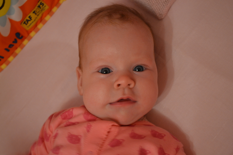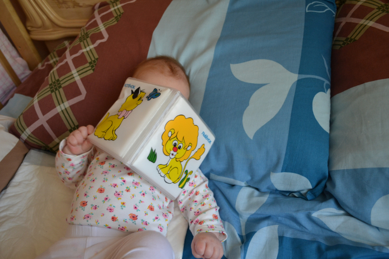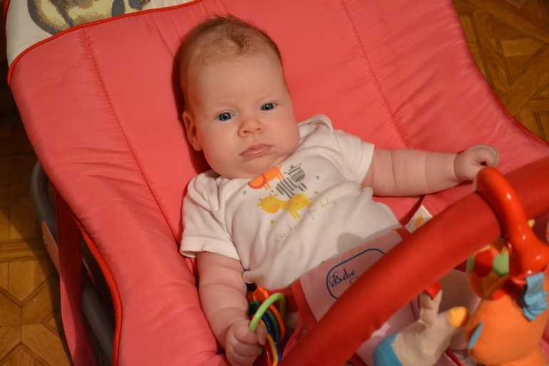 Физическое развитиеНикак не получается написать вовремя, вчера нашей принцессе было 4 месяца. Вес 6600, рост 62см, носим размер 62-68, нам как раз. За этот месяц Дашулька стала активно пользоваться руками и ногами, ногами все больше толкается, особенно с утра когда просыпается а я еще сплю, развернется поперек и давай маму в лицо толкать будить))) Еще любит по дугам на коврике бить ногами, чтобы игрушки мотались, поднимает ноги вверх, думаю скоро дотянет их до рта))) Руками вообще активничает, все теребит, тянет, из руки в руку игрухи передает. Нравится лежать на животике, уже значительно дольше чем раньше, пытается ползти. Редко стала переворачиваться с живота на спину, расставляет шире руки и балдеет рассматривает все! На живот тоже пока не поворачивается, но я показываю как надо, надеюсь скоро. Все также самое любимое это когда ее носят столбиком, она как то так выдается вперед как будто садиться пытается. Смеется уже во всю, щекотки боится, особенно когда целуем ее в шею и в складочки между ножкой и животиком))) Подгузниками уже пользуемся м-кой, взяли опять мэррисы, раньше текли, надеюсь с резинкой теперь течь не будут. Режим дня у нас своеобразный, встаем обычно в 7:15, 1 час бодрствуем и опять на боковую на часик, потом опять бодрствуем часа 1,5-2, спим, и так далее до вечера. Отбой где то в 21:00. Купаемся в ванной маленькой на руках, горку отвергли, с кругом не плаваем, целый месяц не было горячей воды, только сегодня дали. Гулять стало холодновато и дочке совсем не нравится лежать в коляске, тем более закутанной, до рук не добраться))) Кушаем сисю, каждые 2 часа днем, ночью бывает 3 часа перерыв максимум. В общем и целом дочка у нас веселая и общительная))))