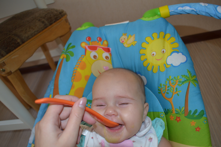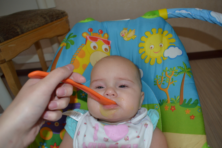 Сегодня дала 50-60 г, я не стала мучать ребенка, вводя каждый день на ложку больше, чем в предыдущие, как в популярных схемах прикорма. Кабачок самый гиппоаллергенный продукт, ребенок у меня (ттт) не аллергик.