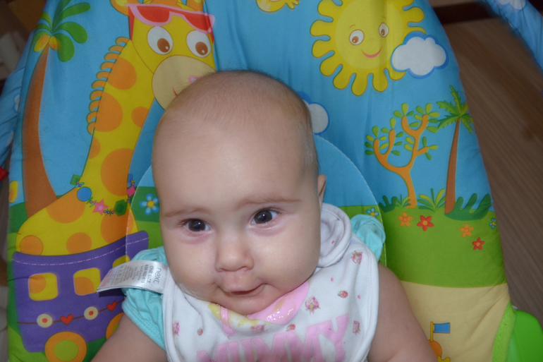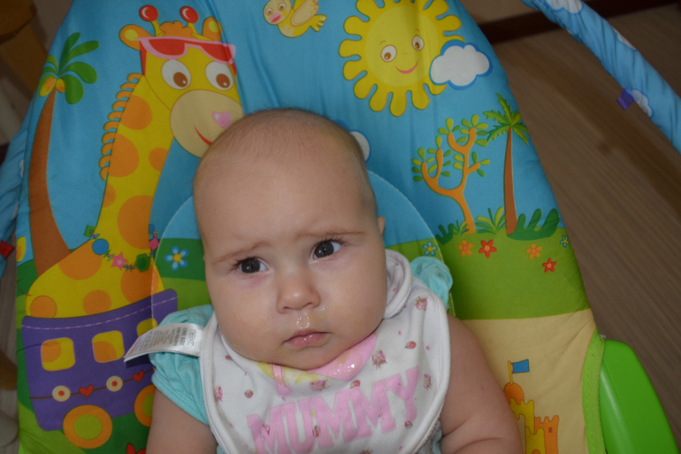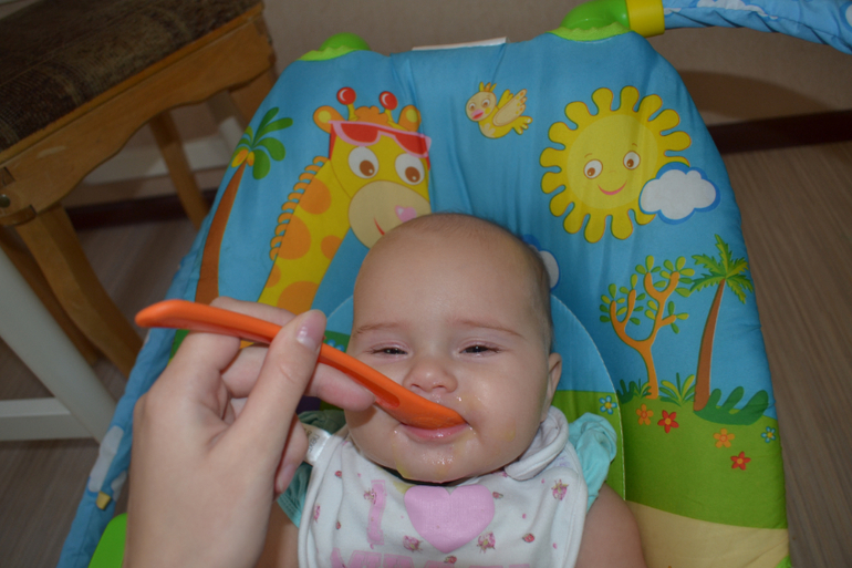 Сначала не очень получилось съесть, она выдула красивый пузырь в ложку, но быстро исправилась и высосала содержимое первой, второй ложки, да еще запросила третью))