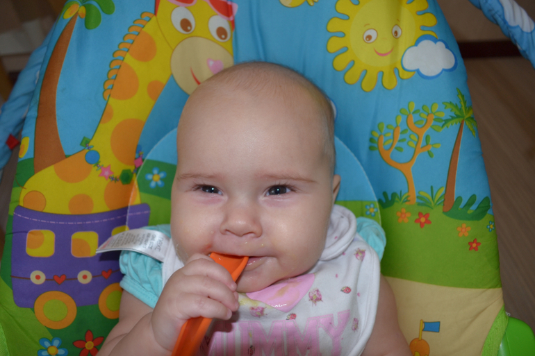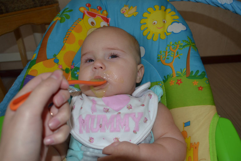 ХвастаемсяВ понедельник 06.10 (5м и 1нед) начали прикорм. Я бы потерпела до 6 месяцев, но мне как раз нужно будет с начала ноября ездить на сессию. Я, во-первых, не могу поручить это ответственное дело никому другому, а во-вторых, хочется заменить уже одно кормление обычной едой, потому что молока у меня в таких количествах сцеживаться не хватит, к сожалению((( И запасы мои в морозилке не такие огромные, а ездить надо будет часто и надолго.