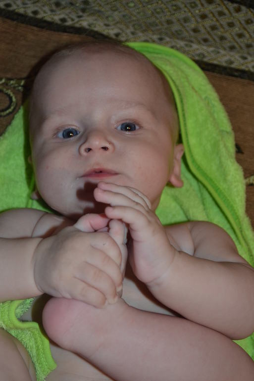 )Сразу после исполнения 4 мес стал тянуть свою ножку себе в ротик)))забавно у нас это получается. Стал хорошо переворачиваться с боку на бок, но сам еще с о спинки на животик перевернутся не может(((И опору держим через раз(((