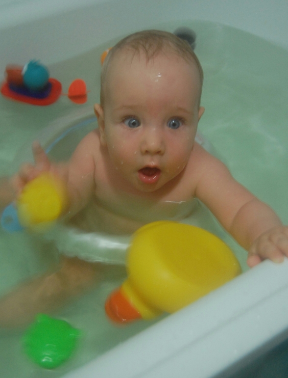 Купаемся мы теперь в большой ванне в специальном стульчике,Илюше нравится,я сама часто с ним в ванной сижу,веселимся,воды много разбрызгиваем.Но есть одно "но",Илюша когда устает по воде руками бить,опускает голову и прихлебывает воду))))Сам закашливается,чихает,но,блин,опять делает тоже самое))Вроде и воды немного наливаем,и удерживаю его голову,но вот как тянет его прихлебнуть малясь водички))