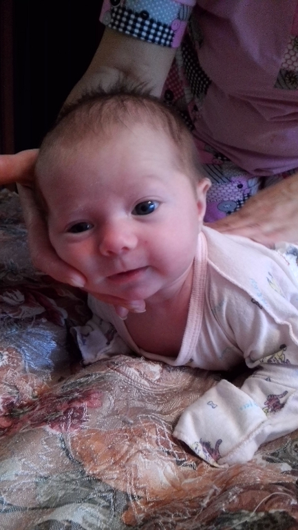 Физическое развитиеВот и прошел этот трудный и самый счастливый месяц в нашей жизни! Начну с того что днем и вечером мы не спим! почему незнаю! качаешь качаешь и все бес толку, глаза закрывает, только ложишь и через 10 минут мы просыпаемся! Как и все дети мы кричим и так же спокойно лежим в одиночестве! Мы активно переворачиваемся на бочок, ползание на животе наше самое любимое занятие!На первом приеме сказали чуток шейка у нас кривится в право, ну ни че будим выкладывать значит влево! Весим мы 3900 (+1000), это считая что мы полностью на ИВ! молока у меня нет, что только не делала и воду и чаи пила и порошки глотала и массаж делала, все бес толку!