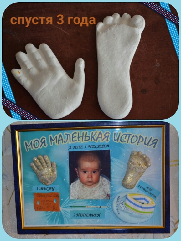 ХвастаемсяВот решили младшенькой (4 месяца) сделать слепочки. Старшему (3 года) в месяц делали. Ну тут пока делали с мужем старший еще слепки захотел. Вот что у нас в итоге получилось. Осталось только в рамки оформить.:-):-)