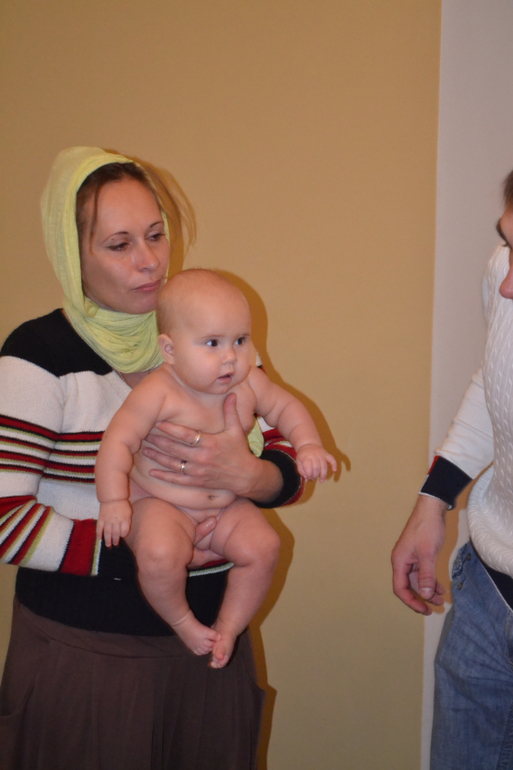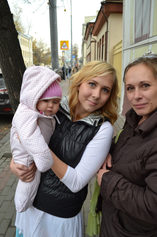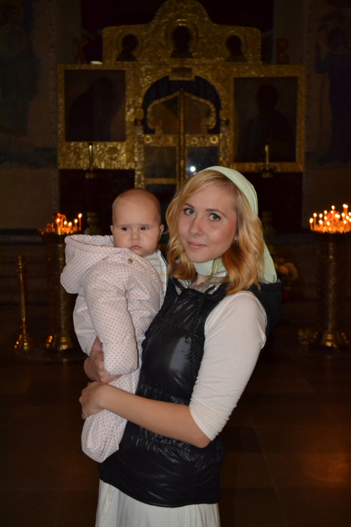 Изначально у нас с мужем были разногласия (это мягко сказано) по поводу того, где и в какой церкви крестить. Я настаивала на Москве, здесь мой батюшка (наш родственник, человек от Бога, которому я очень доверяю), а муж настаивал на Курской церкви (там маленькая церквушка, не принадлежащая к Московской патриархии, даже чуть ли не воюющая с ней). Долго рассказывать различия церквей на уровне патриархии, да и мало кто в этом разбирается. В общем, во время беременности я сказала, что обсуждать крестины не буду, дабы не ссориться и не нервничать. После рождения тоже старалась избегать разговора, т.к. спорить с моим мужем нереально сложно - он слышит только себя и никакие аргументы и доводы ему не важны (и это при том, что я за словом в карман не полезу - издатель все-таки). Так мы дотянули до Настиных 5,5 месяцев. Крестили в итоге в Москве (слава Богу!) в Марфо-Мариинской обители на м.Третьяковской, но муж ворчал и был явно недоволен, все крестины фоткал и разглядывал фотки вместо того, чтобы молиться (а мне-то что, главное, что в этом важном вопросе все по-моему).