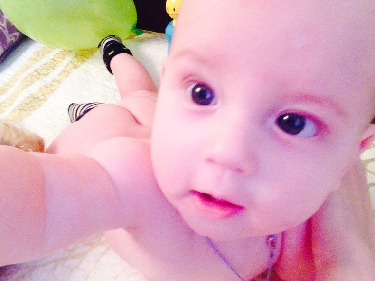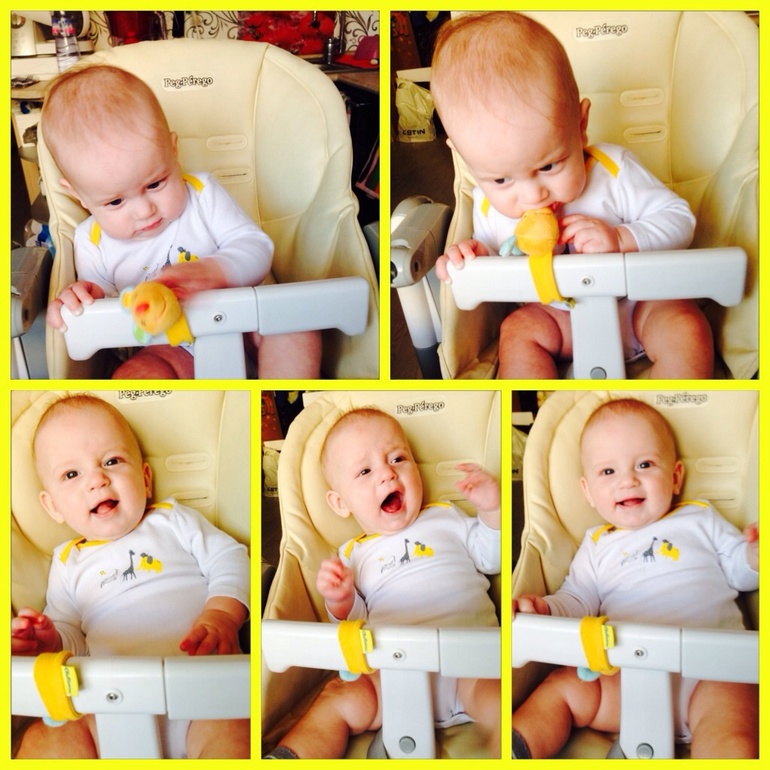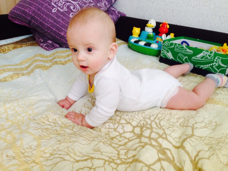Ох как мне было тяжело все это время, многие думаю видели мои посты про несчастные колики. Много девочек мне сочувствовали и жалели нас, им спасибо за поддержку. Я уже смерилась с болью, как в один из дней все стало гораздо лучше, примерно в 5,5 месяцев, просто взяло и прошло. Сколько только я задавала анализов, к кому мы только не обращались, а прошло все само. Боже, не описать как я СЧАСТЛИВА!!! Теперь я просто хочу забыть эти все как страшный, ужасный сон! Данилушкины умелки- мы встаем на четвереньки и раскачиваемся, пытаемся ползти но заваливаемся на бочок. Но если есть цель, то мы туда чуть не допрыгаем))) перекатами, перепрыжками но доберемся) сидеть, пока не сидит и даже мне кажется ему это не интересно. Если дать пальчики то подтягивается очень хорошо. Но от сидения он не восторге. У нас есть один зубик, второй на подходе. Все это он терпит мужественно, только чуть капризничает бывает. Прикорм еще не вводила, хочу начать с субботы. Просто боялась за животик, хотела что бы все как следует прошло. С полугодиком тебя любимый сынок:****