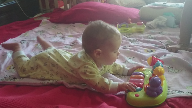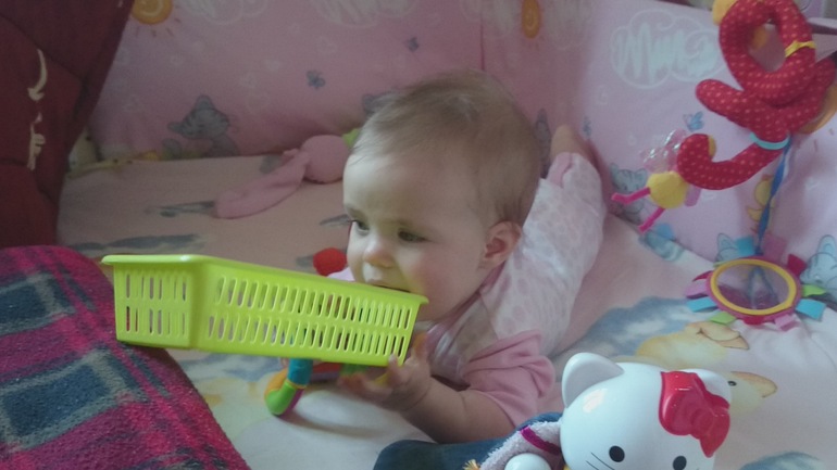 ХвастаемсяДд! Вот и наши семь месяцев незаметно подошли вчера) Время стало бежать стремительно! Были у врача ,вес 6360,рост 64,5,продолжаем быть дюймовочками) Умеем кататься во все стороны и это похоже наш способ передвижения,ползать пока даже и не пытаемся,не сидим,мама в ожидании всего этого) Начали с шести овощи,теперь начнем каши! Появилось много громких новых звуков и много смеха! Всем удачи ,здоровья и удачных прогулок!