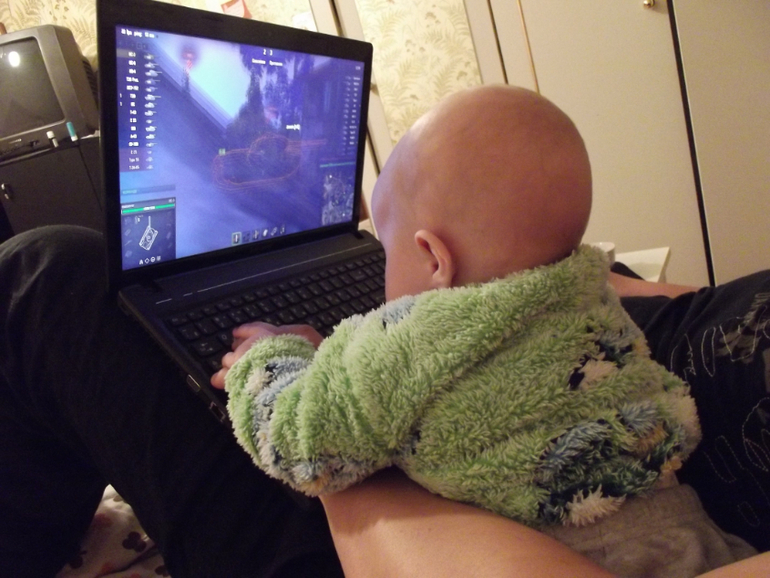 -Понимает разницу между "её вещь" и "наша".Очень любит с папой сидеть за ноутбуком, клацать кнопочки и водить мышкой. Отдали ей старую нерабочую мышь и клавиатуру ( перед этим помыли разумеется ). Она посмотрела, что мы с мужем ними не пользуемся и не захотела играть. Приползла играть на НАШЕМ ноуте. Это касается и всего остального;