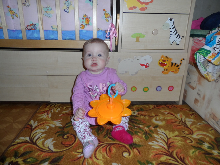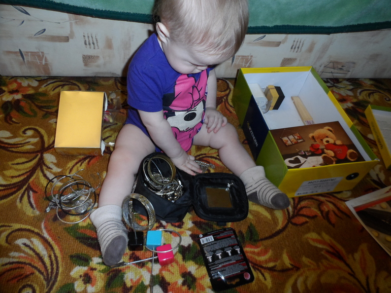 Ира любит перебирать пальчиками мелкие предметы, например, мою бижутерку или заколки(естественно под моим строгим контролем).