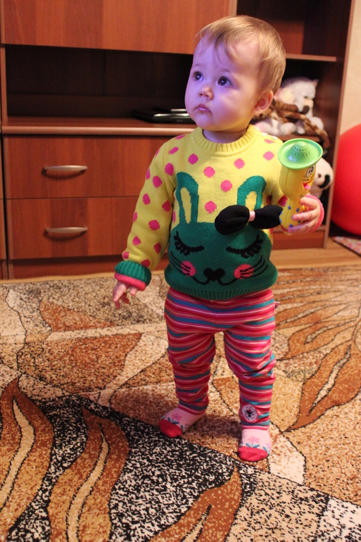 И так стоит уверенно,у меня первая дочка тоже в 10 пошла.Везет вам,скоро уже годик!Как летит время!