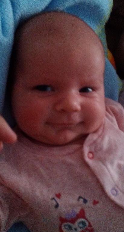 Мы налаживаем режим,пока получается,хотя понимаю что еще много раз все поменяется. Любимые игрушки у нас это клубничка тини лав и погремушка солнышко той же фирмы:) А вообще любимое занятие -разглядывать бабочек на стене,не зря мы с мужем по ночам их вырезали))) Слава Икее-сына может целый час рассматривать занавески,а я могу переделать кучу дел:) начитавшись про пользу классической музыки я каждый божий день включала ее сыну,ее он не оценил:))однажды я переключая каналы наткнулась на какой то концерт,пел шатунов,так Кирюха чуть голову не свернул в кроватке,сразу заулыбался так,чихать мы хотели на моцарта:))вообщем с того дня по вечерам у нас играет его репертуар,и в кого сынуля у нас такой:))))Родились мы 4040-55,а сейчас 6510-65,растем на глазах,хочется еще многое рассказать,но пока сын спит нужно ловить момент и бежать в душ)) И пару фоток напоследок,вот такие мы щекастики)
