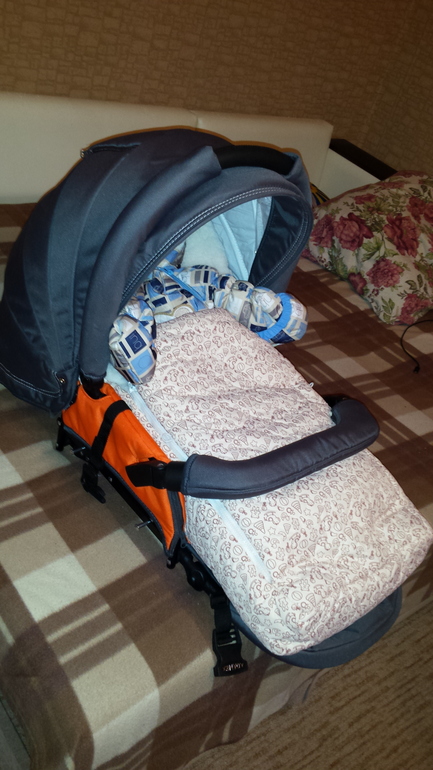 мы перешли в прогулку месяцев в 8-9, до этого влезали (пока тепло было)! Я клала одеяло на угол и и когда укрывала, получалось,что сзади и по бокам одеяло стоя было и закрывало все щели! Капюшон опускается ниже,мне больше нравилось, чем в люльке!