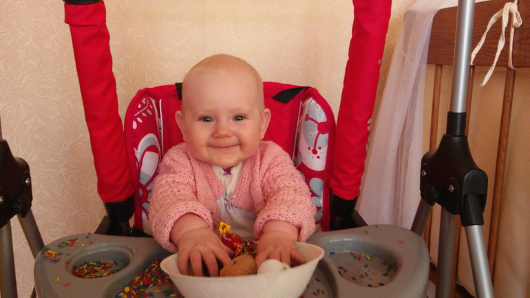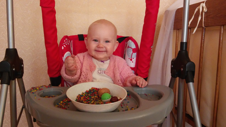 Стала много разговаривать на своем малышовском языке)))) из последнего неосознанное ма-ма, но такое приятное, что в такие моменты я готова ее расцеловать!))))) а вообще целовать эти сладкие щечки и пухленькие ножки я готова постоянно! Это самое большое удовольствие!!! Каждый раз когда София засыпает не могу насмотреться на нее, это такое счастье быть мамой!!! Только сейчас понимаешь, что ничего нет важнее моего ребенка! Смотришь на это чудо и все печали, переживания и проблемы уходят на второй план.
