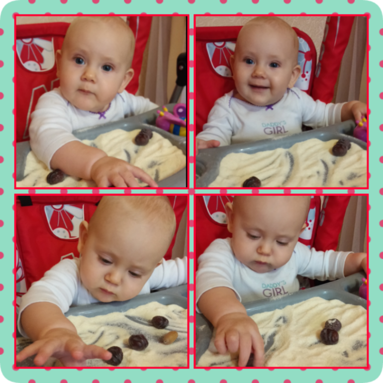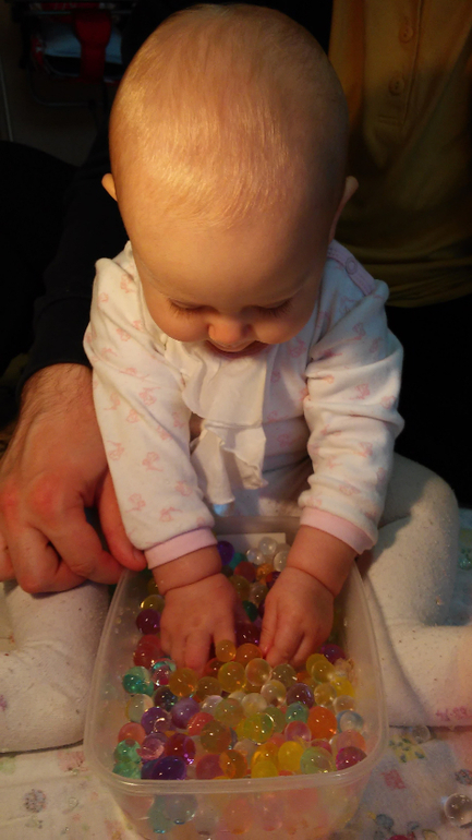 Мы понемногу начали смотреть карточки, пока смотрим овощи, фрукты и животные. София их внимательно рассматривает, пока удержать ее внимание мне удается, надеюсь дальше будет так же. Из сенсорного у нас каштаны, желуди, орехи, фасоль, манка, крашеный рис (вызвал большой интерес). Недавно делали гидрогель, Софии понравилось, долго рассматривала, мяла в ручках. Книжки читаю в основном ей фоном, потому что малышка так и хочет ее схватить и помять листочки, или даю ей во время чтения маленькую твердую книжку, пока она ей занимается, я читаю ей. Пока только так, надеюсь, что будучи старше мы будем понимать, что с книгами нужно обращаться аккуратно))) Кстати, заметила недавно, что когда она играет со своей книжечкой (маленькая, твердая, с рисунками) очень много что-то рассказывает себе, в основном это аааа, эге-гей, де-де и др.)))