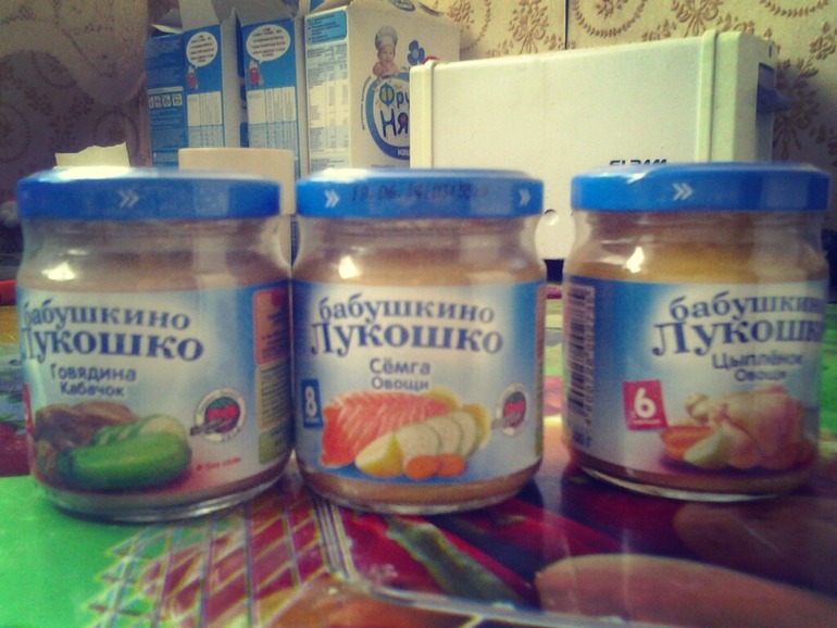 я готовлю все сама, кроме каш и фруктового пюре (хотя она их плохо кушает). фруктовое как раз берем бабушкино лукошко.