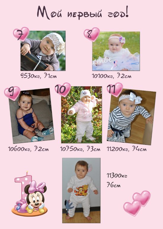 Весим мы 11,3 кг, рост 76,5 см.(родились 2860 и 48 см)