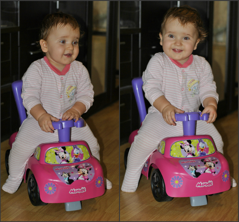 Стоять сами мы боимся, бывает забывается и стоит, но вспоминает и сразу садится. Ходить тоже не ходим соответсвенно. Но зато держась за чтото носимся по всей квартире)