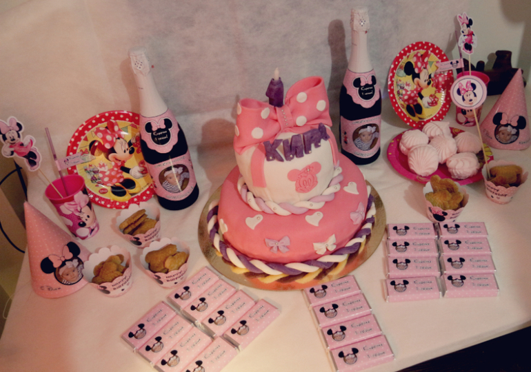 Праздник был в стиле минни маус! Украшения делала моя подруга Катя , плакаты и торт делала я!